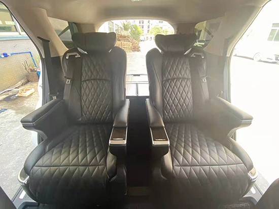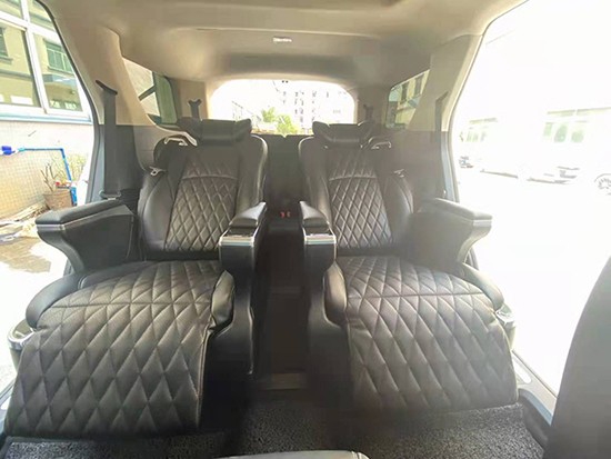 比起原车的六座版座椅,航空座椅更像两张沙发,皮质柔软符合人体工程学,靠背的贴合性和座垫的包裹性都要比原车的好,最关键的是座椅可以电动调节,座椅共有六项调节功能,分别是:电动腿托、前后移动、靠背调节”不同的身材方便调节不同的坐姿从而达到舒适,就像坐头等舱一样。