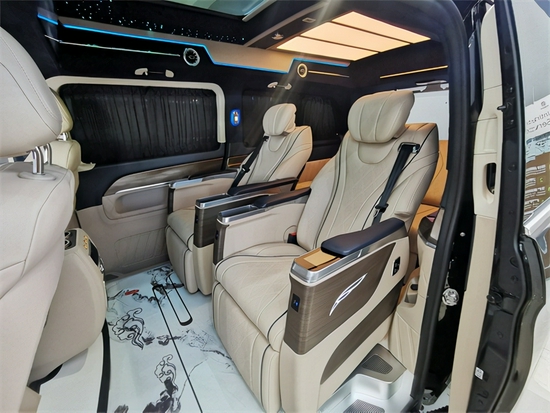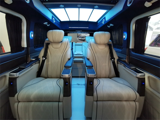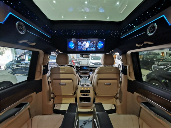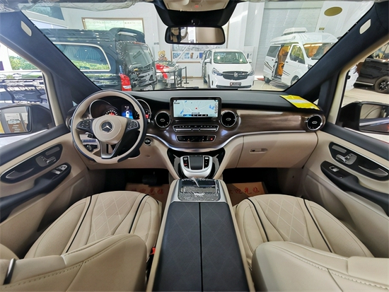 全新奔驰V260改装商务车撇开全新家族式的高水准外观格调不谈,奔驰V260改装带给我们的震撼才刚刚开始,在其灵动俏皮的外在表现之下,内饰配置的改装才称得上是全新V级的灵魂所在,很好的融合了奔驰新式轿跑的设计元素和豪华商务车的生活化功能配置。高顶奔驰V260采用原装奔驰地盘车身尺寸为:长5370*宽1928*高2050,配备M274 2.0T发动机,最高时速为185千米/小时,最大功率为155/5500Kw/rpm,最大扭矩为350/1250-4000 Nm/rpm。