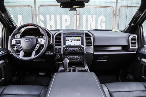 20款福特猛禽F150皮卡内饰采用独特的中控台和门饰板面漆和真皮包裹的方向盘,中控台部分辅以银色饰板装饰,六指针仪表盘的设计有些后工业时代的复古风格,采用带电冷热功能的可记忆式皮革座椅,头枕四向可调,搭配铝饰条和黑色钢琴烤漆内饰。