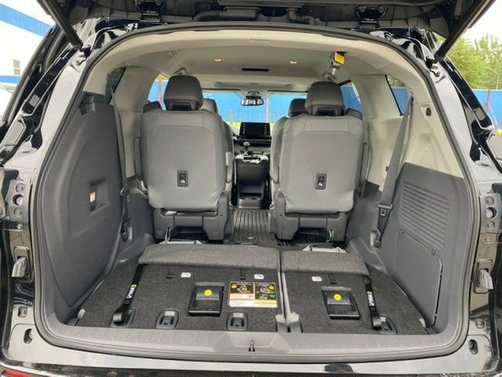 2021款全新丰田塞纳国六2.5油电混动内部空间非常大,充分发挥了MPV的优势,座椅全部采用双色真皮,第二排座椅的腿部支撑,放倒第三排座椅,加上腿部支撑,完全变成了两张摇篮床,让长途旅行多了一份舒适,宽敞舒适后座空间,配上该车安全稳定的行驶系统,保证途中也能舒适地谈上生意。