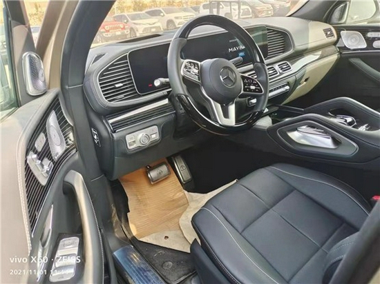 迈巴赫GLS600使用家族最新的设计语言,带有一体式大屏、氛围灯等配置,做工极其考究,豪华感扑面而来。方向盘、中控台等处都使用了实木、真皮等材质,触感、观感都无可挑剔。同时,新车还配备了该车型专属的64色氛围灯、名为“NO.8 mood”香氛系统和Burmester品牌高端3D环绕音响系统。