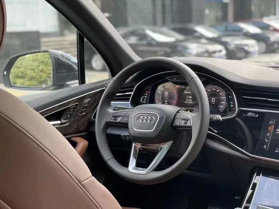 全新一代奥迪Q7的内饰造型是典型奥迪风格,材质高档、做工精细,真皮座椅和方向盘、深棕色木纹装饰的点缀都体现出了低调的豪华感。领先版才能选的液晶仪表盘,中控台的功能键排列有序,在排挡杆的周边,布置了MMI多媒交互系统和一键式启动按钮。
