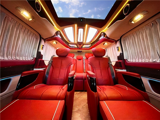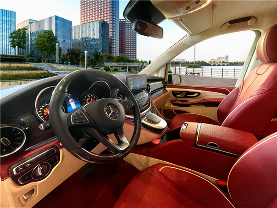 奔驰V260L商务车改装改装每一席座椅皆享尊贵定制级的豪华舒适,即便身处第三排,亦能享受以人机工程学打造的应需而变得舒适旅程,奔驰V260L商务车改装后排座椅垫可前后电动调节,椅背整体可倾斜,实现躺卧姿势。宽大的中央扶手采用皮质包覆,提升用户的便利性。顶部超大天窗以及独特氛围顶灯的设计带来了明亮舒适奢华的内部环境。
