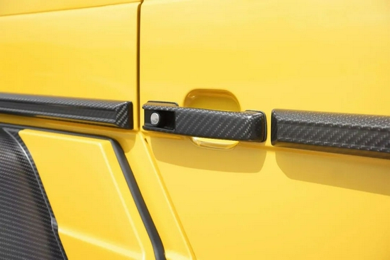 为了进一步凸显自家碳纤维的精致特别,MANSORY此次专门选用了备受年轻人青睐的兰博基尼同款黄色金属漆为AMG G63 6 x 6做整车喷涂。当美观大气的黑线碳纤维空气动力学套件与潮流悦动的黄色金属漆撞到一起,一种全新的跳跃视觉印入眼帘。你很难用语言去描述它的特别,但就是会发自内心地感受到阵阵桀骜热血。
