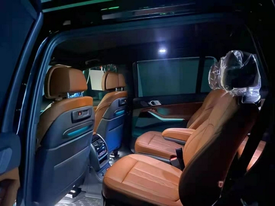 全新X7两侧扁平的多边形LED尾灯组与前大灯相呼应,并由中央镀铬饰条相贯通,提升了美感。车身尺寸方面,宝马 X7的长宽高分别为 5151×2000×1805毫米,轴距为3105毫米。