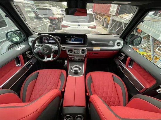 [同中规特别限量版配置] 特别限量版红色豪华内饰包(S600V12黑科技气动转向菱形格座椅,通风加热6项热石按摩+座垫按摩、特别限量版标配手工缝制小牛皮仪表台、菱形格内饰、鹿皮顶、四车门小牛皮包裹)特别限量版AMG暗夜包,黑杠,AMG红卡钳,赛车碳纤维毛皮战斗方向盘GT弹射按钮,22寸熏黑轮,双碳纤维内饰包,顶级富豪专属限量版G63全球最顶配!没有之一!彰显独特身份!