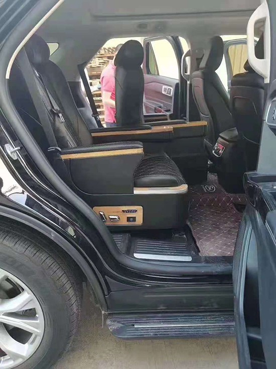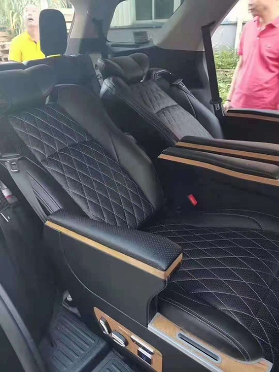 除了海绵和骨架上的合理设计和皮质上的用料外真正影响舒适度的还是因为航空座椅的可调节性,座椅带有六项调节功能,“电动腿托2项、前后移动2项、靠背调节2项”加起来六项,有调节性能的座椅才符合更多人的坐姿从而达到更高的要求,主要还是灵活为主,原车中排座椅比较死板,所以舒适度不高也是这个原因。