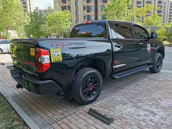 21款丰田坦途SR5TRD版皮卡排量5.7L自然吸气,8缸V型,最大功率380KW,最大功率转速6500prm,最大扭矩544Nm,变速箱6挡手自一体,四驱两驱切换,车身长宽高(5814*2006*1935mm)最高车速185km/H,轴距3700mm,整备质量2419Kg,油箱容积139升,非承载式车身。