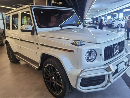 奔驰G63 (配置|询价) 标准配:4.0升V8AMG发动机,577匹马力,AMG变速TCT 9速变速箱,前座椅记忆,前排座椅加热,滑动玻璃天窗,三区气候控制,空气净化,电热挡风玻璃,加热方向盘,AMGNappa真皮性能方向盘,Burmester环绕声系统,苹CarPlay,64色LED环境照明,自动启动/停止,AMG性能排气系统,AMG高性能制动系统,红色的刹车卡钳,AMG控制自适应阻尼架,主动车道保持辅助,盲点辅助,主动刹车辅助,交通标志辅助,主动停车辅助,360度环影,主动多光束LED照明系统,LED日间运行灯。