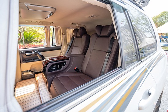 四座的效果可以达到很多人理想的舒适空间,遗憾的是坐不了四人以上,这方面说也算是有利有弊,其他的弊端方面细数基本没有,很多人可能有时候会拿自己的爱车去越野,想到的是改装后安不安全,这个可以放心,绝对安全的,座椅各方面都有国家安全认证,座椅内部的骨架使用的是冲压骨架,安全性能比原车的还要好,而且说到底越野人可能不需要舒适性,动力才是追求的目的,但是相信比起越野开酷路泽去长途旅行的人更多,这时候舒适性就很重要的体现出来了。