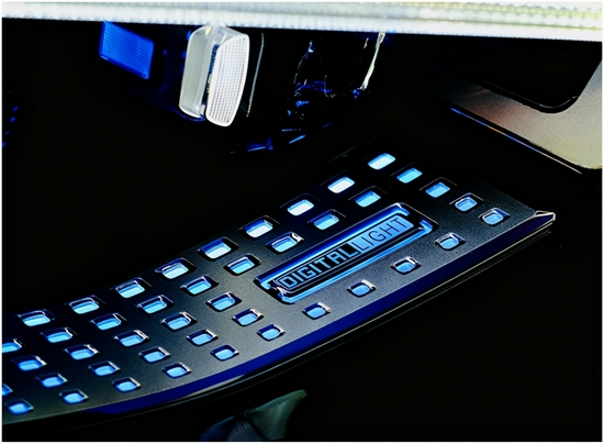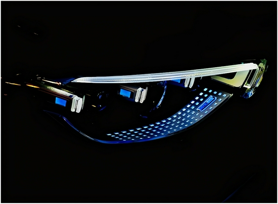 DIGITAL LIGHT数字矩阵大灯,拥有130万个可独立控制的微透镜,左右两个灯组投影分辨率达260万像素,它不仅能提供高精度的远光遮蔽,还可以根据接收到的实时道路信息把警示图形投影到路面上,这也是目前业界最先进的量产大灯组了。