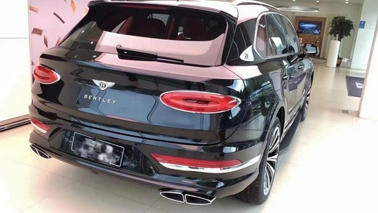 21款宾利添越车尾部分,新款添越使用了宾利最新家族式的尾部设计,整体看上去十分简洁、椭圆形尾灯犹如两颗珠宝,十分璀璨。双边共四出的排气,标志着新款宾利添越依然有着十分强悍的性能。