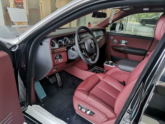 21款劳斯莱斯幻影 (配置|询价)的帕特农神庙式进气格栅无比尊贵。车身尺寸为5992/1990/1650mm,可能这个数据让你有点迷茫,不过没关系,你只要知道它比奔驰S600L、宝马760LI (配置|询价)等汽车要大上一圈,3820mm的轴的距离完全可以让一个身高1.9米的人伸直双腿。