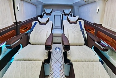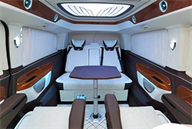 对于改装车而言大多数的配置基本相同,主要是工艺、用料以及色彩搭配的不同从而导致价格方面存在差异;地板采用高光地板配有迈巴赫标识,侧身全部采用纳帕皮质包覆以及桃木件点缀增添豪华性与富丽感,顶灯采用迈巴赫同款的宫格顶灯和天使之翼顶灯相结合,除了避免单调的同时又进一步增添整车的豪华性,航空座椅以及半隔断电视搭配JBL音响等设施,不仅为我们提供舒适的乘坐感受,同时也为我们的娱乐提供优质的视听感。