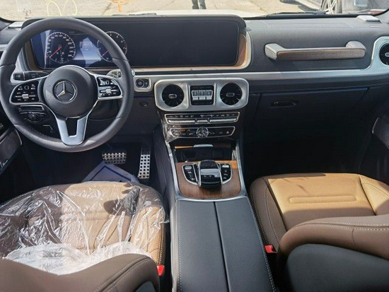 2021款奔驰G550的内饰是奢华与硬派的结合卓着的品格和典雅的工艺在车内表现得淋漓尽致,对细节的千锤百炼是内饰计划中的首要原则。内饰变化巨大,全新的12.3寸液晶仪表、扶手箱、方向盘,都是奔驰最经典的设计理念。两块屏幕组成中控主体。而引擎盖上方追加了大面积轻量化碳纤维材质组件,并在两侧追加了同为碳纤材质的空力套件,搭配车身大型轮拱同样碳纤维材质的设定,并刻意透出半截碳纤维材质的迷人纹路,让奔驰G550的外观更显凶悍。