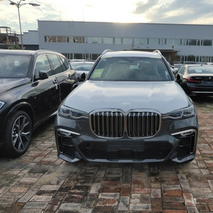 宝马经典的双肾进气格栅,在面积上扩大了很多,几乎占据了X7的整个车头,看起来十分霸气,而且X7对 前脸大灯组还进行了升级,车头大灯采用的是矩阵式激光大灯,无论是视觉上还是照明度上都得到了很大的提升,因为是7座车,X7的车身侧面看起来非常长而且 厚重,有些类似于路虎的设计风格,大量的平直线条装饰着X7的车身,让这款车的霸气程度提升了很多,车尾的设计则是非常简洁,车标下一条贯穿式的镀铬饰条将车尾一分为二,层次感比较分明,尾部排气造型为双边单出式排气,具有一定的运动感。