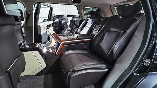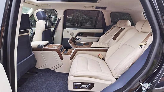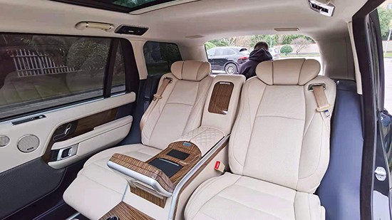 揽胜行政内饰足够豪华,改动不需要太多,把后排坐人的三人座椅改成两座的老板椅就足够完美。