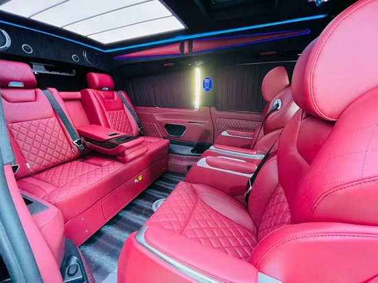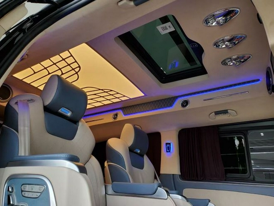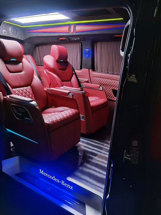 奔驰V260商务车采用2+2+3座的形式,真皮座椅,座椅带脚拖伸展、通风、加热、按摩 记忆等功能,气动按摩缓缓转动力道足,体验舒爽,手法完全可以媲美真人!电动调节靠背,可以任意调整至您觉得舒适的角度。360度旋转。后三排一体式沙发座椅带有四项电动调节,还可以躺成床,中间扶手处有杯托、储物设计。