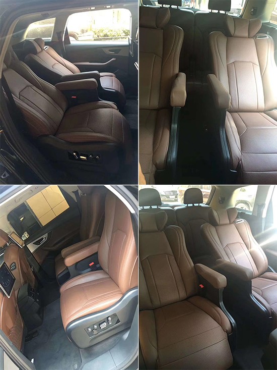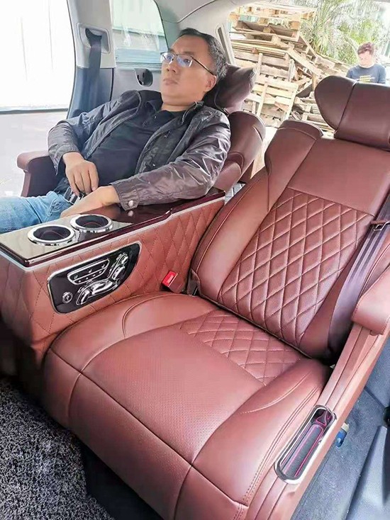 改装后原来的三排坐变为两张航空座椅,最大的改变是靠背可调节打下,这在长途能提供很大的舒适度,开车累了可以提供一个很好的休息地方。