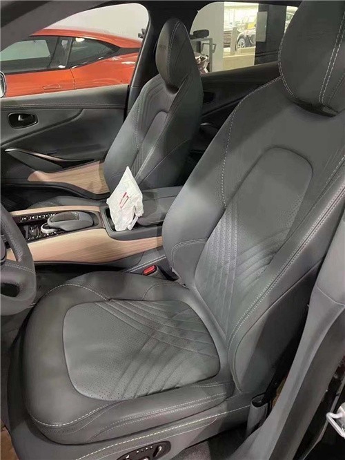 座椅配色尽显奢华的运动质感。细腻的座椅质感舒适度非常高。整体做工精致,用料考究。前排座椅还是非常漂亮,并且具有很好的支撑性和包裹性。前后排座椅均配备加热和通风功能,这是照顾车内乘客的直观表现。后排的座椅同样非常柔软,座垫长度和靠背角度都很合适。