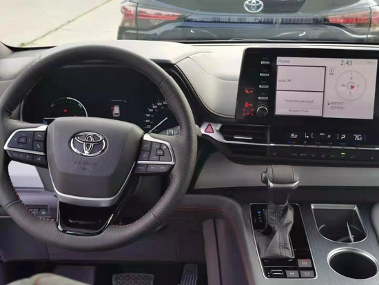 2021新款丰田塞中控台更显格调雅致,中控台上设置了前排空调控制 及部分车辆功能按键区域划分明确,操作起来很顺手。四辐多功能真皮方向盘符 合人体工程计划,提升了精巧度的同时握感也舒适。方向盘上集成多种功能,操 作便利减少对安全的影响并且带有语音控制。