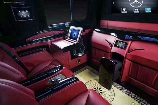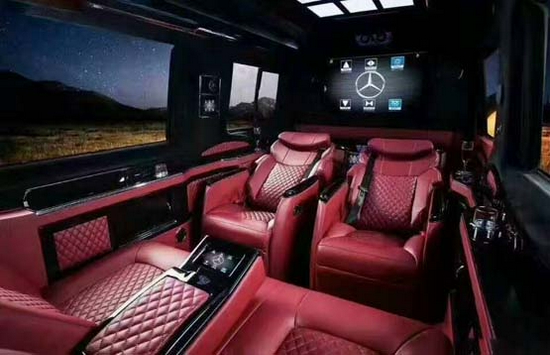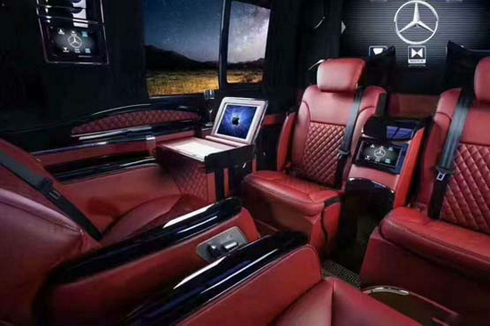 天花乱坠不及到店体验一回,奔驰斯宾特红钻版商务车,内饰豪华精致,科技感突出,举手投足间都是气质,不同于美系车型的霸气,不同于日系车型的巧妙,但它车内的每一处都值得您去细细品味。奔驰斯宾特头顶可改成浪漫情怀满天星顶灯,犹如在静寂的夜空中翱翔。脚踏高档柚木地板,坐在私密的移动包厢内,老板能享用彻底私密的影音包间,具有如家般的精致小生活!