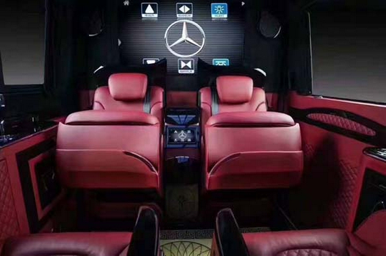 多功能媒体区配有超大液晶电视(带卫星电视)、DVD播放器、影院级环绕立体声音响及低音炮、豪华版吧台和酒柜、咖啡机、车内还搭载声控系统,控制电动设备一句话就能搞定,这无一不体现着这款商务车的豪华别致。豪华真皮航空电动按摩座椅,以及高端的科技内饰,能够给车内的商务人士以舒适美妙的乘车感受。电动可旋转按摩座椅,可以自由调节头枕和脚托,肩部、背部、大腿、小腿。后排座椅前端搭配一台便携式折叠办公桌,辅助您工作洽谈中随手使用,也可以放置电子设备。后排座椅空间很大,采用豪华真皮包裹并遵照人体力学设计,乘坐起来非常的舒适。