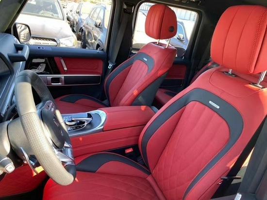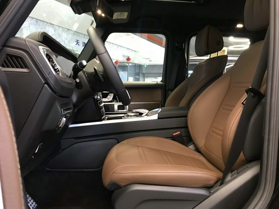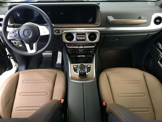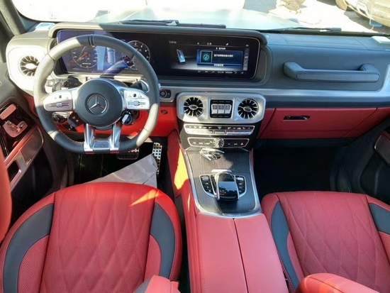 奔驰G63采用了奔驰最新的双屏幕式设计,全液晶仪表盘和中控台屏幕都达到12.3英寸。同时内饰质感和工艺都有了很大的进步。较之于现款车型,它的内饰发生了巨大的变化,融入了不少现款奔驰S级 (配置|询价)(配置|询价)、E级的设计元素,从而变得更加豪华,而家族式的连屏设计则凸显了车内的科技感。当然了,经典的“三把锁”按键自然不会缺失,并且设置在中控台最为显眼的位置。