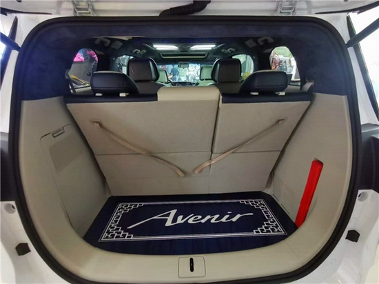 后备箱的空间跟随第三排沙发床是否选装二决定的,图片为原厂第三排的。地板为Avenir地板