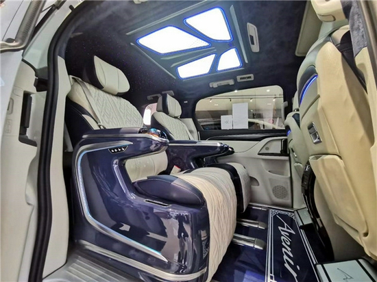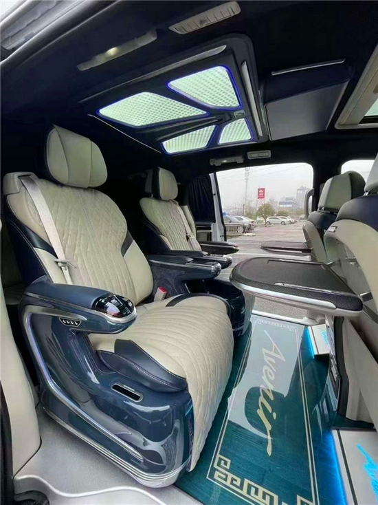 1。左电动中门。2。右电动中门 3。 电动尾门 4。 航空座椅 5。柚木地板 6。扶手冰箱 7。全车隔音 8。全车音响系统升级 10。九宫格顶灯 11。车顶氛围灯 12。带灯门槛条 13。吸顶电视 14。多功能小桌板 15。 360全景 16。反光镜折叠 17。盲点辅助 。高配中网 19。隐私窗帘 20。高配桃木内饰 21。雅典娜包围 22。主驾驶电动座椅23。副驾驶电动座椅 24。主驾驶通25。副驾驶通风 26。主驾驶加热 27。副驾驶加热28。 桃木方向盘 29。发光车标 30。主副驾驶包覆 31。顶棚翻毛皮+满天星 32。后排沙发床33。整车专用升级线束34。流媒体35。柚木脚踏
