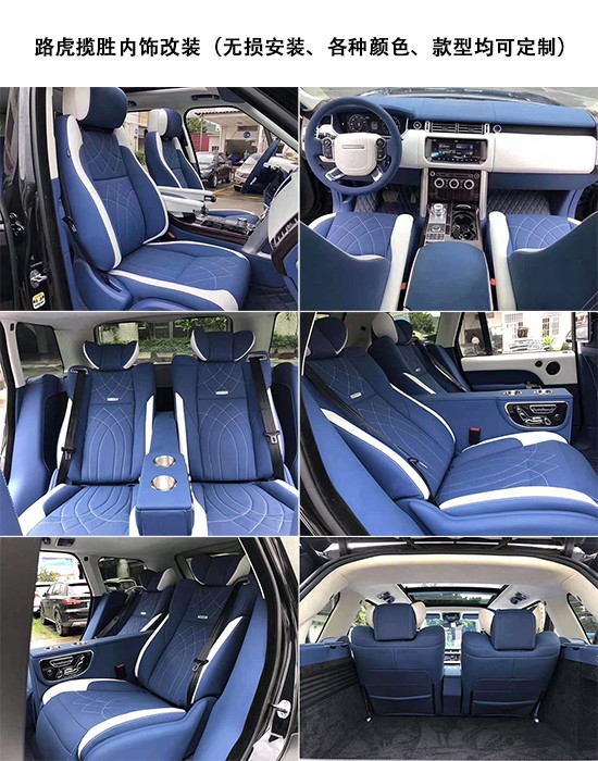 路虎系列SUV改装项目清单(包括但不限于):航空座椅、柚木地板、全隔断、带升降电视、半隔断吧台、吧台隐藏座椅、桃木方向盘、方向真皮包、覆仪表台真皮包覆、驾驶座真皮包覆、驾驶座电动调节、驾驶座电动加热、驾驶座电动通风、驾驶座电动按摩、驾驶座气动按摩、驾驶座加棉、驾驶舱鹿皮顶、后舱鹿皮顶、后舱星空顶、九宫格顶灯、ABCD柱鹿皮包覆、遮阳板鹿皮包覆、驾驶位门板真皮包覆、中门门板真皮包覆、后尾门门板真皮包覆、全车侧壁真皮包覆、全车私密手动窗帘、主副驾驶中央扶手箱、主副驾驶扶手带冰箱、吸顶电视、主副驾驶靠背小桌板、可拆卸小桌板车、车内氛围灯、吊顶、等其他项目。