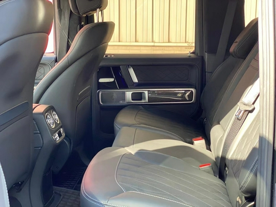 内部采用了高档地毯、钢琴黑饰条和皮革座椅,营造了一个十分豪华的内饰氛围。 21款奔驰G63采用了奔驰最新的双屏幕式设计,全液晶仪表盘和中控台屏幕都达到12.3英寸,同时内饰质感和工艺都有了很大的进步,较之于现款车型,它的内饰发生了巨大的变化,融入了不少现款奔驰S级 (配置|询价)、E级的设计元素,从而变得更加豪华,而家族式的连屏设计则凸显了车内的科技感。