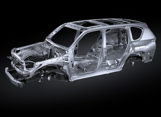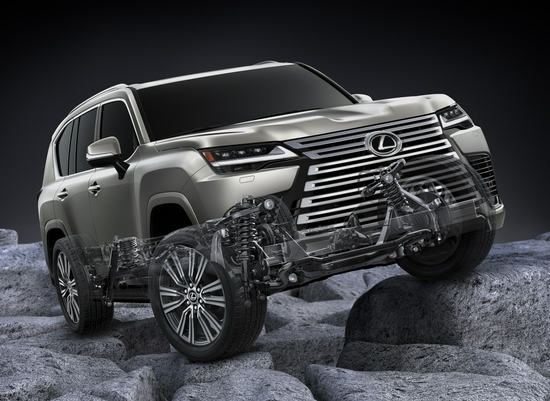 最后我们来看看LX600的硬核部分,首先,新车基于丰田TNGA-F平台打造,且延续了非承载车身的结构。根据官方数据,LX600相比上一代车型,减重约200公斤,且车身刚性提升20%。