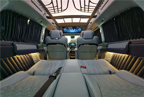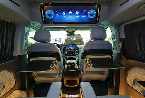 全新奔驰威霆改装七座商务车驾驶舱方面,全新三幅式设计方向盘,集成诸多实用性功能按键,中控台设计亦是可圈可点,极具现代美学享受,取消了独立液晶显示屏以及全新COMAND系统,取而代之的是大尺寸液晶显示屏和杯托,更加主打实用特性。中控台设计亦是可圈可点,极具现代美学享受,取消了独立液晶显示屏以及全新COMAND系统,取而代之的是大尺寸液晶显示屏和杯托,更加主打实用特性。