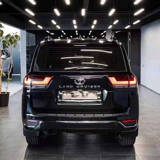 22款丰田酷路泽LC300车身侧面的设计较为简洁流畅,配备大尺寸银色轮圈,车窗外缘配有镀铬饰条,整体依旧呈现了很强的气场。还提供了金属材质打造的迎宾踏板,顶部还可选装金属行李架。车尾为隐藏式排气布局。