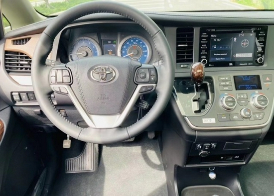 20款丰田塞纳四驱LTD的内饰:桃木镶嵌的中控台更显格调高雅,方向盘集成多种功能,操作便利。方向盘集成多种功能,操作便利减少对安全的影响并且带有语音控制