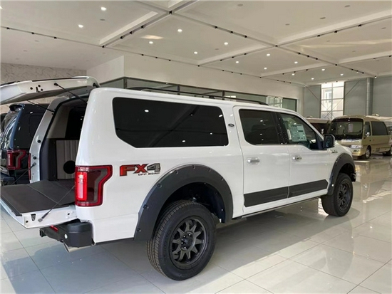 车身尺寸:5907*2080*2004。3.5TT双涡轮增压10速手自一体变速箱,最大可爆发381匹的马力为我们提供优越的动力,20寸的轮胎尺寸以及四驱驱动让我们能更好地驾驭各种路况,后续选配氮气减震可让我们整车增加5-8公分的高度。