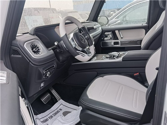 20款美规奔驰G550 自适应悬挂 大屏 轮毂锁 ①G manufaktur定制内饰包:[G manufaktur Nappa菱形座椅,黑色绒面顶(鹿皮顶),Nappa 真皮仪表盘,无框后视镜,动态支撑前排座椅 前排按摩座椅,前排通风座椅,前排座椅快速加热,真皮室内把手,带Nappa皮革边框的丝绒地板垫] ②AMG 暗色(运动)包[AMG Line外观样式,奔驰字样的制动卡钳,AMG脚垫,AMG运动型排气,黑色外观装饰件,黑色奔驰星标] ③金属纤维内饰 ④360环影 ⑤20英寸AMG多辐轮毂 方向盘加热