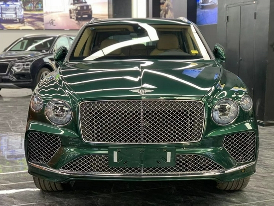 全新改款后的宾利添越 (配置|询价),车头的进气格栅尺寸更大也更竖直,更接宾利经典轿车的设计风格,四个椭圆形大灯都变成了发光设计,而不是老款的大灯清洗装置,改款后的宾利添越采用宾利最新的钻石切割LED矩阵式大灯,炫彩夺目。