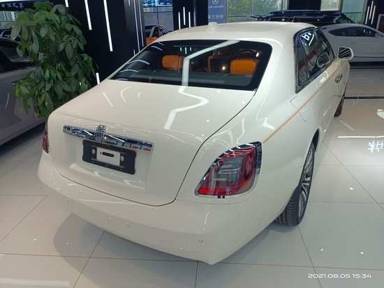 劳斯莱斯新古斯特长轴 颜色:英吉利白/黎明橘/黑 木饰:开孔黑木 状态:展位现车 配置:,劳斯莱斯时钟,后排娱乐系统,RR 头枕刺绣-黑,座椅滚边-黑,彩色缝线。 黑,真皮顶饰,流星效果星空顶,后排 2+1 座椅,后排按摩座椅