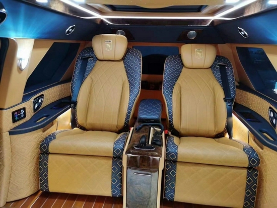 四驱乔治巴顿打开后门进入后厢,这才是这辆车最重要的部分,低透光度的暗色玻璃在车外几乎看不到车内,你不配置也可谓是极尽奢华,第二排独立的两个座椅舒适宽敞,完备的影音系统提供了非凡的视听感受。但是当您拉开车门,车内所展露的豪华设施定会为之而惊讶内饰,座椅纯手工缝制,看上去非常舒服,有着一种优雅古典的格调。
