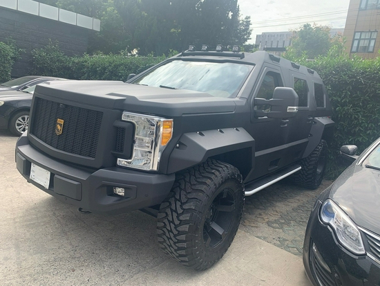 全新款“乔治巴顿”越野车整车纯手工定制,采用美国福特专用底盘,轮胎和轮毂也经过专门设计,较深的轮胎花纹提高该车极佳的抓地力,豪华的轮毂也为这个硬汉增色不少。此外,这部车还配备了四轮驱动系统,以应对各种复杂路况。