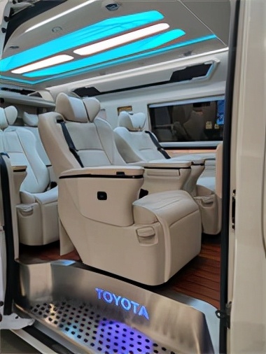 乘坐舱采用四张埃尔法 (配置|询价)同款航空座椅,采用人体工程学理念设计让我们有更舒适的乘坐感受,除此只外半隔断电视配备高端音响为我们商务出行提供优越的视听感;同时全车采用新式隔音技术与回声处理让我们内部的防噪做到了极致。于此同时全新升级的地板与我们的氛围灯光以及顶灯让我们整车的豪华性更一步。