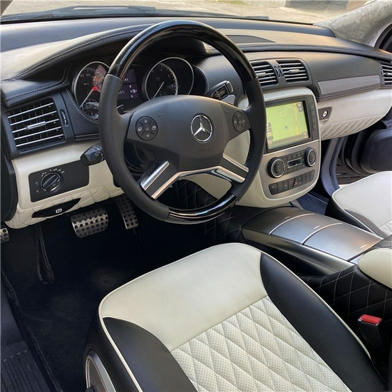 R级大型旅行车是渴望超大空间用户们的不二之选。第二排座椅靠背后面的存储空间可最多容纳 6 只旅行箱,若将第一排座椅后方全部作为存储空间,将可达到 1384 升,令多人商务出行再无后顾之忧。采用Nappa皮饰,抓握区采用打孔皮革并带有功能键,方便操控, 亦提升了内饰的尊贵感。