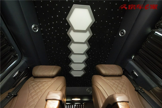豪华星空车顶使得夜晚的乘客区呈现出一片令人心醉神迷的浪漫温馨氛围。