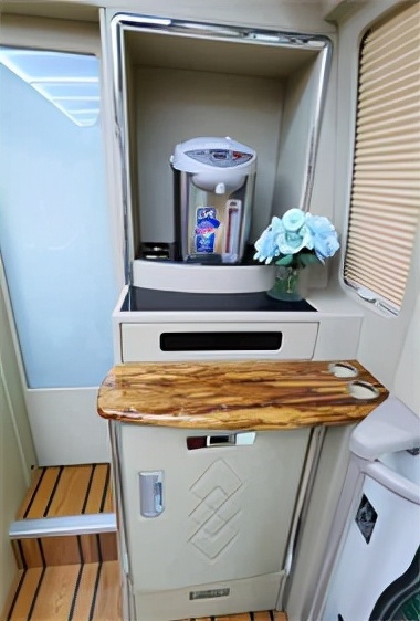 华通丰业丰田考斯特车内电动百褶窗帘精选产自韩国,防阻燃、防静电。A380空壳顶灯可以调节12种不同色彩,每一种颜色瞬间切换的过程也是一种舒心的享受。冰箱、烧水壶、冷热毛巾柜都是比较实用的车内设施。