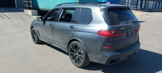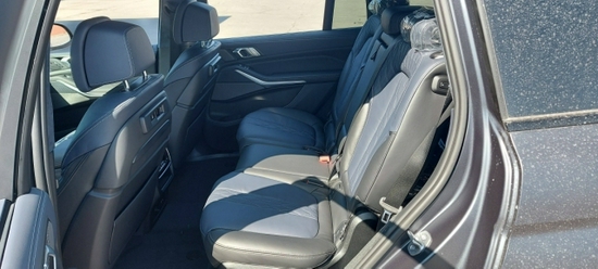 21款宝马X7暗影版侧面我们会发现它的腰线设计平直流畅,前后贯穿修长自然,这也是宝马一直以来的风格。在车顶有行李架,还有装饰条,处处可以看到一些细节,黑色处理让线条看起来更修长一些,也增加了运动感。暗影版搭载了22英寸的轮毂,霸气十足。