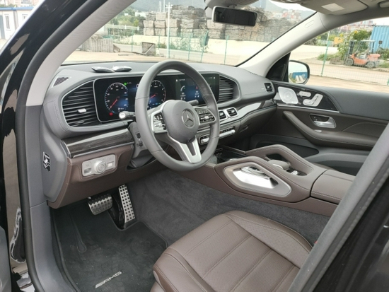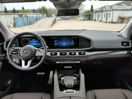 21款奔驰GLS580内饰采用了很前卫的设计,新车采用了三幅式的运动方向盘,中控大屏和液晶仪表采用了连体式的设计。全新奔驰GLS580的空调出风口采用了方形设计,它的中控台上的面板采用了很有质感的木纹装饰,中间的空调出风口下方的按键质感也不错。新车的前侧的地台上还配备了扶手设计,上面还配备了氛围灯。