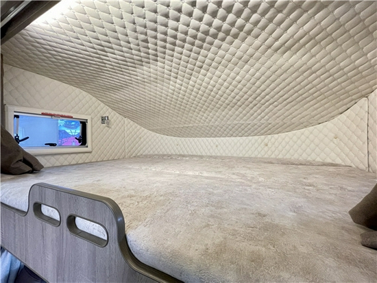 内部采用环保板材装饰看上去更为舒心;额头区配有电视以及额头床方便我们娱乐的同时又提供休息区域;没有配备天窗是为了更好地保温隔热;会客户采用对坐式卡座同时配有外置桌板也可满足我们六人同时的吃饭;会客区上方配有4个吊柜,同时我们的卡座下方也可以进行储物,再搭配我们尾部的储物仓让我们拥有近2500L的储物空间。18017751185