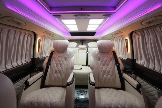 智能化特点:航空座椅的调节(靠背、腰托、腿托、脚托、360°旋转、按摩、加热)由触摸屏控制,只为您的舒适和便捷。后排娱乐、办公桌、大屏显示器、放倒试沙发床,由此您可想象奔驰威霆的舒适度、便捷度和豪华程度,也给您在旅途中提供了更多乐趣。